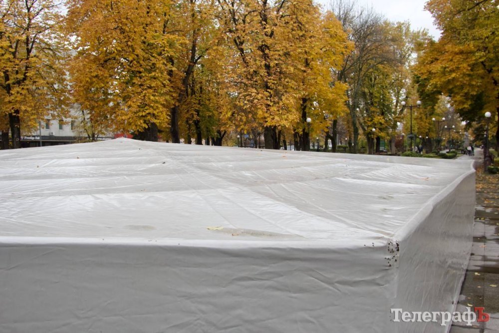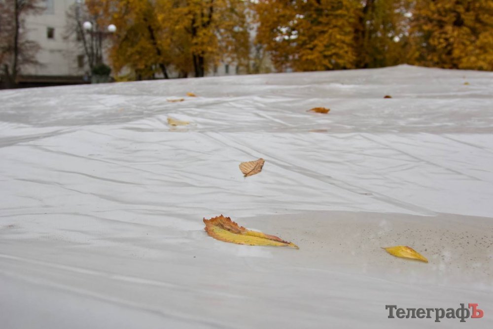 Комунальники «Благоустрою Кременчука» вже накрили чашу водограю спеціальним захисним чохлом, який вбереже його від морозів.