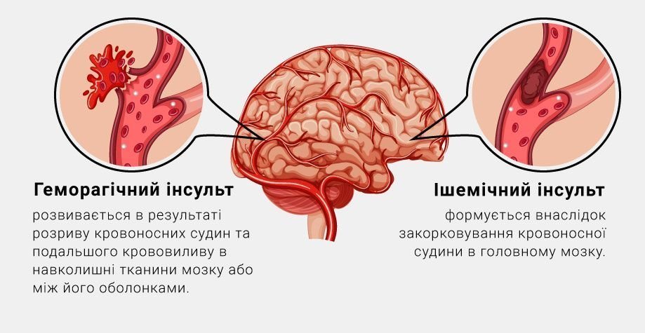 - ішемічний – коли артерія, що постачає кров у мозок, закупорюється тромбом або спазмується.
