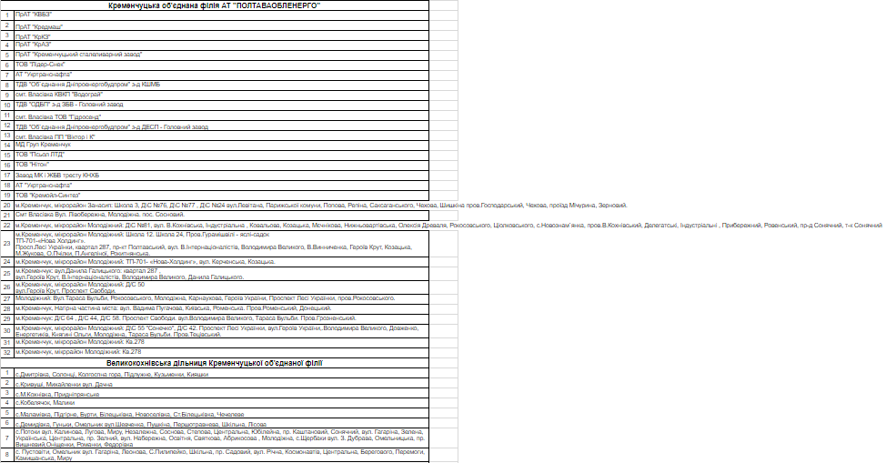 1 черга по Кременчуку