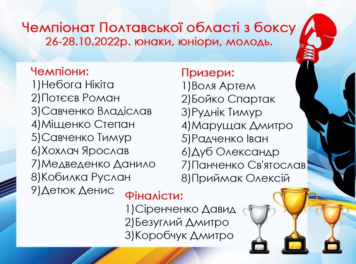 Кременчуцькі боксери взяли участь у Відкритому чемпіонаті Полтавської області. Близько 160 хлопців та дівчат виборювали першість у своїй категорії. Змагання проходили у Полтаві протягом трьох днів, з 26 до 28 жовтня, на базі Національного Університету імені Кондратюка.