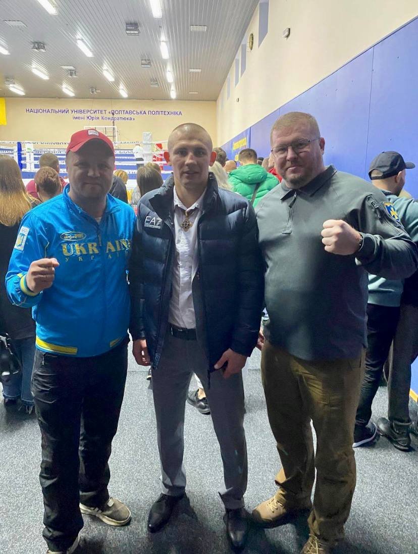 На фото майстер спорту міжнародного класу Бражник В., Заслужений майстер спорту Хижняк О. (фіналіст Олімпійських ігор) та начальник Полтавської обласної військової адміністрації Лунін Д.