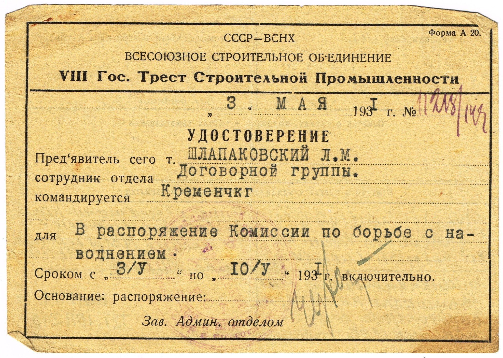 На прохання Кременчуцької міськради Наркомпраці повертає Шлапаковського до Кременчука, де він обіймає посаду головного інженера відділу комунального господарства до 1941 р. У цей час він готує матеріали до складання першого генерального плану соціалістичної реконструкції Кременчука [Іл. 11], приділяє велику увагу питанням благоустрою та озеленення міста, мріє про те, щоб перетворити курний, піщаний та заболочений Кременчук в одне із найбільш зелених та упорядкованих міст України.