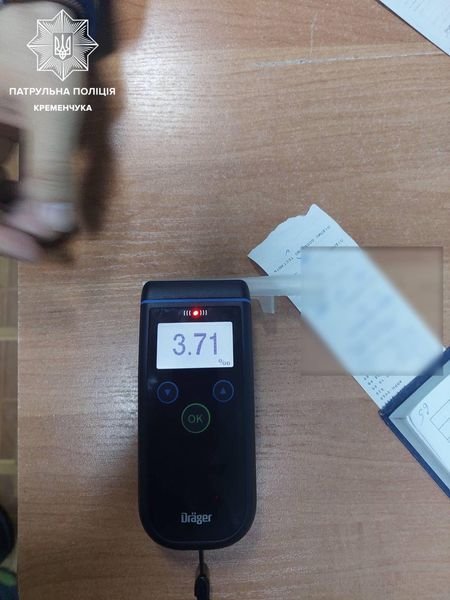 Прилад «Драгер», під час проведення огляду на стан сп’яніння, показав чималий результат — 3,71 проміле. Максимально допустимий рівень алкоголю в крові — 0,2 проміле.