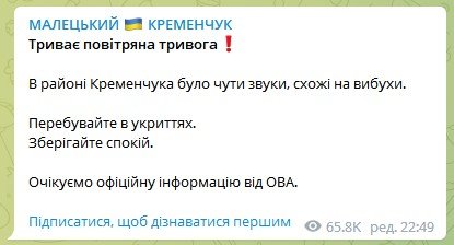 Вчора, 7 листопада, після 22.20 кременчужани чули звуки вибухів. Це підтвердив о 22.50 міський голова Кременчука Віталій Малецький.