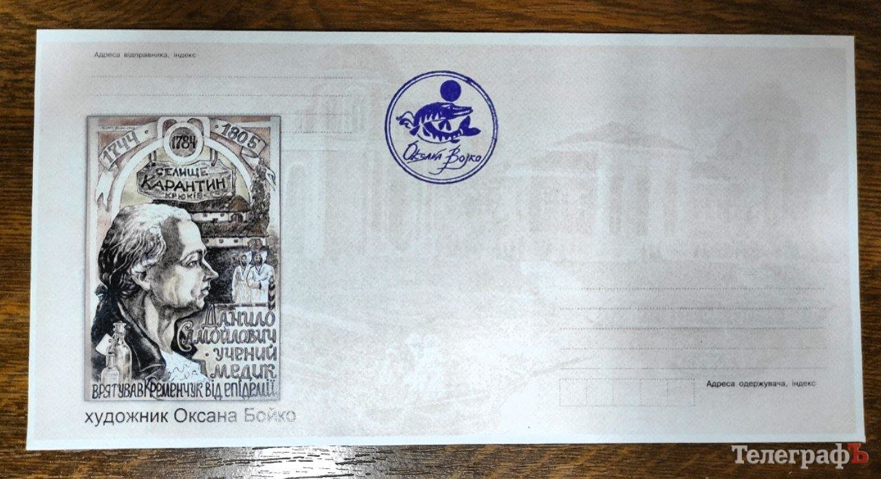 До відкриття меморіального барельєфа вченому, лікарю-епідеміологу Данилу Самойловичу (Сушковському), який врятував Кременчук й Україну від епідемії чуми 1784 року місцеві філателісти випустили пару поштових конвертів.