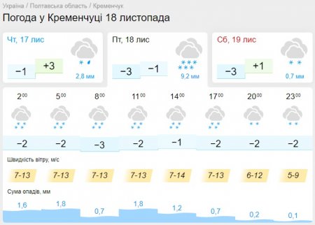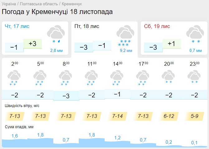 А от уже через тиждень, наступної п'ятниці, очікуємо густий сніг і -3°С. У Кременчук увірветься зима.