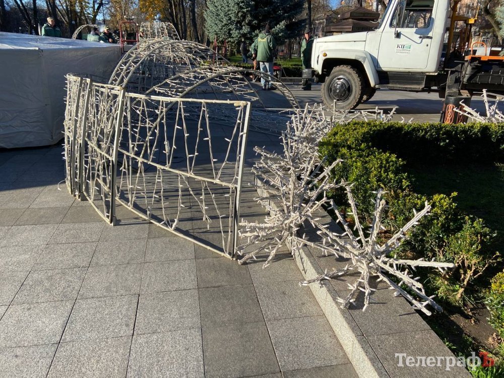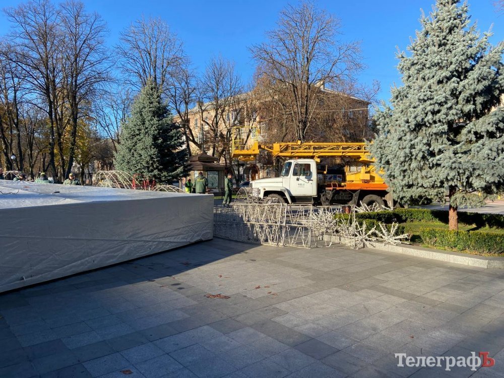 У Кременчуці починається підготовка до новорічних свят – працівники «Благоустрою Кременчука» у сквері імені Олега Бабаєва уже почали монтували світлодіодну ілюмінацію на фонтан. Світлини цього процесу зробив наш фотокореспондент.