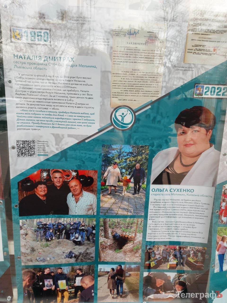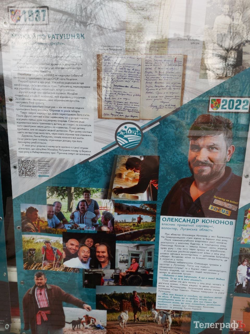 На прикладі 13 особистостей – 6 пар людей і однієї мисткині – показана аналогія злочинів проти українців двох режимів – комуністичного початку XX століття та рашистського зараз, на початку XXI століття. На плакатах порівнюють історії людей зі схожими долями, наприклад, двох підприємців, двох землевласників, двох педагогів, двох депутатів тощо.