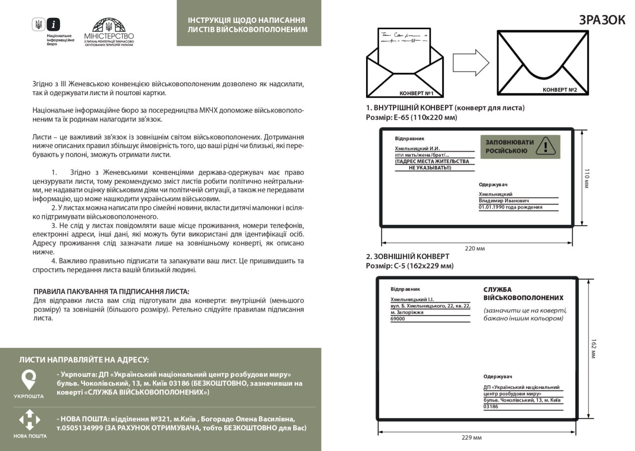 З правилами написання кореспонденції для військовополонених можна ознайомитися в інфографіці: