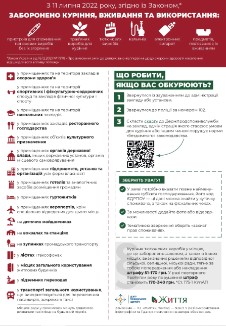 Так, відтепер сигарети для нагрівання прирівняні Законом до електронних і звичайних сигарет та заборонені до куріння у визначених громадських місцях. До того ж Закон розширив список місць, де заборонено куріння будь-яких тютюнових виробів.