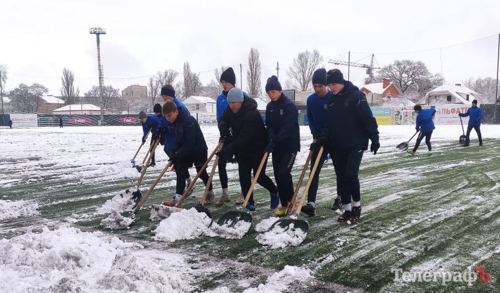 До роботи долучилася й професійна команда ФК «Кремінь». Футболісти разом з тренерами Романом Локтіоновим та Валерієм Куценком не цураючись роботи прибирали сніг. Й дорослі й юні футболісти разом розчистили поле, щоб провести тренування.