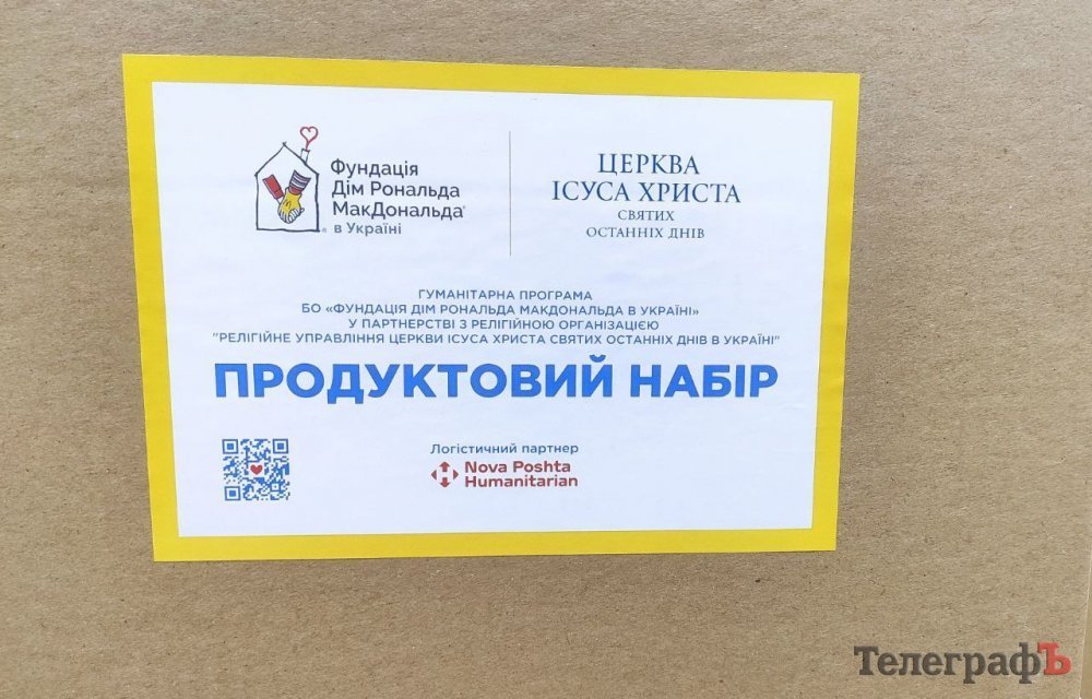Це вже друга видача продуктового набору від «Дому Рональда МакДональда». Вага пакунка 7,5 кг, а до його складу увійшли: крупи, чай, булочки, молоко, цукор тощо.
