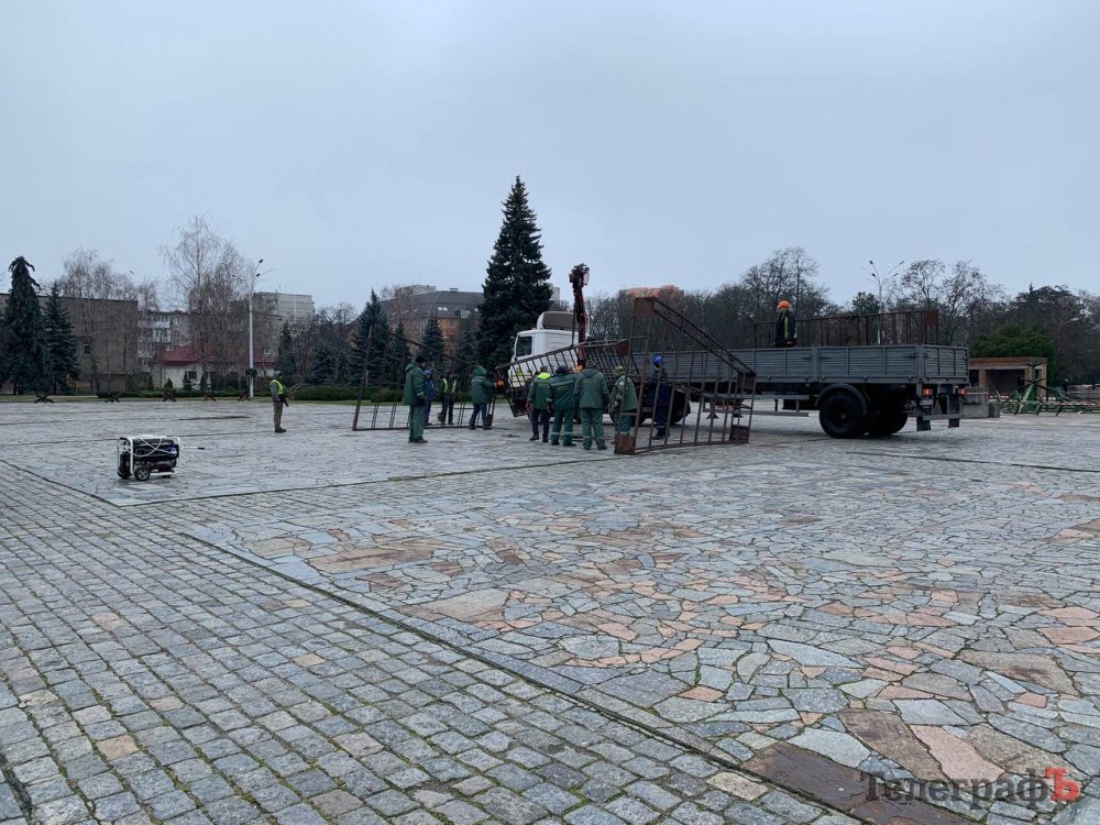 У понеділок, 21 листопада, у Кременчуці почали встановлювати головну ялинку міста на площі Перемоги. Наразі працівники «Благоустрою Кременчука» монтують каркас.