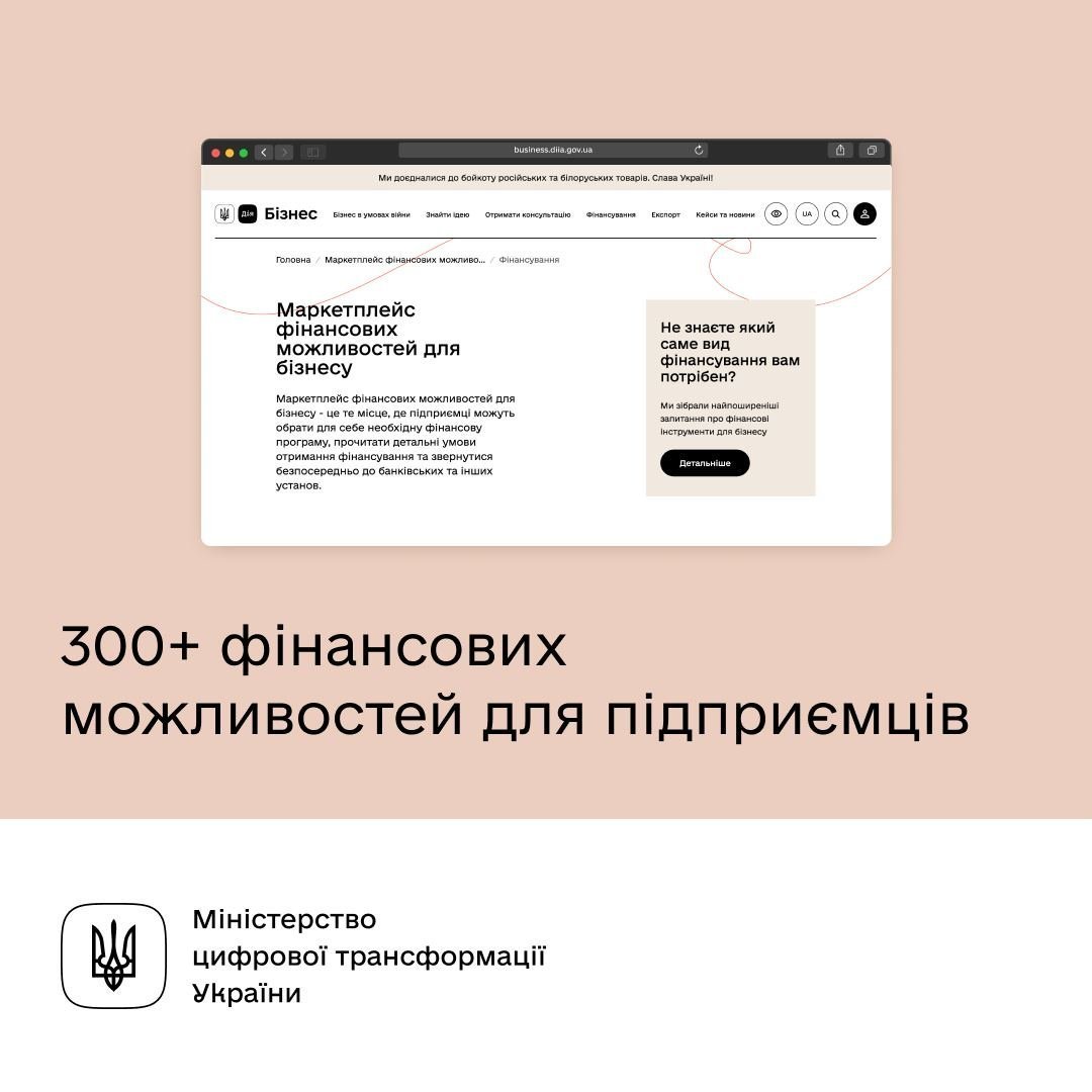 Тепер підприємці можуть дізнатися про 300+ фінансових програм для розвитку та масштабування власної справи: кредити, лізинги, гранти, державні та міжнародні програми підтримки.
