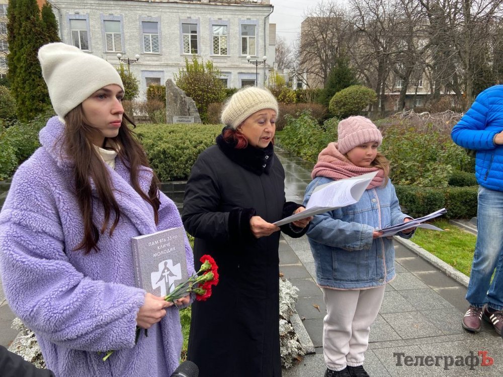 Під час заходу викладачка Кременчуцького національного університету Ганна Капустян зачитала спогади людей, які пережили ті страшні роки, а потім до меморіалу поклали квіти та запалили свічки.