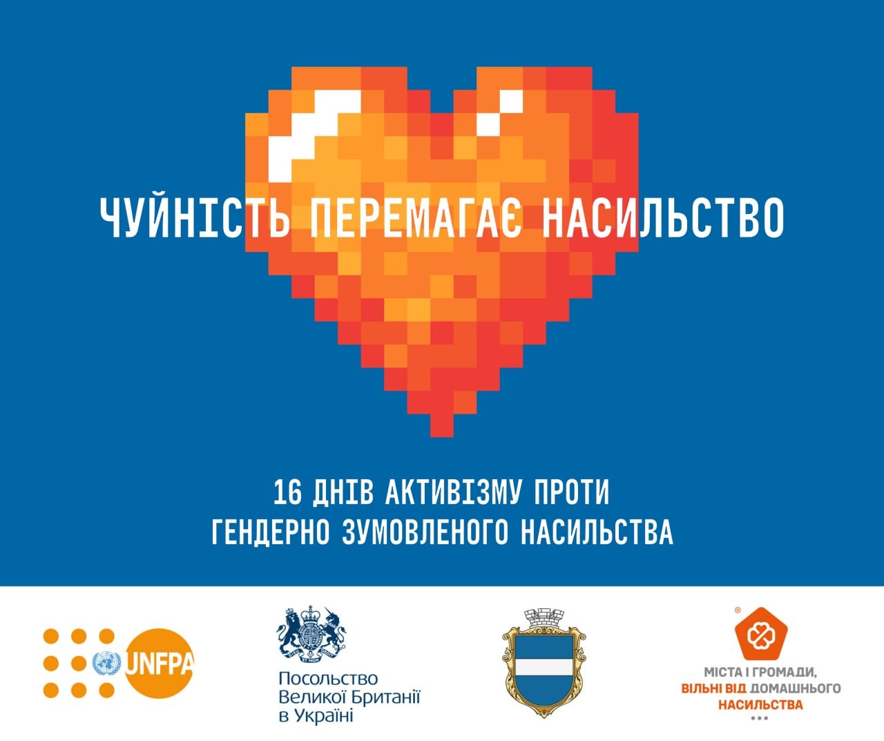 Акцію до 16 днів активізму проти гендерно зумовленого насильства організовує UNFPA, Фонд ООН у галузі народонаселення, у співпраці з партнерами, за підтримки уряду Великої Британії, Канади та США, зокрема, за підтримки Бюро гуманітарної допомоги USAID під гаслом «Чуйність переможе насильство». Громада Кременчука є учасником проєкту UNFPA «Міста і громади, вільні від домашнього насильства» з 2020 року. У межах проєкту у Кременчуцькій міській територіальній громаді розбудовується система сервісів підтримки та допомоги тим, хто страждає від усіх проявів насильства. Якщо ти також потребуєш такої підтримки чи допомоги — звернись за нею. Як це зробити, читайте на сайті «Розірви коло».