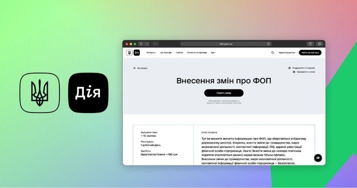 Зробити це можна онлайн — через портал «Дія». Послуга називається «Внесення змін до ФОП». Тут ви можете змінити інформацію про ФОП, що зберігається в Єдиному державному реєстрі.