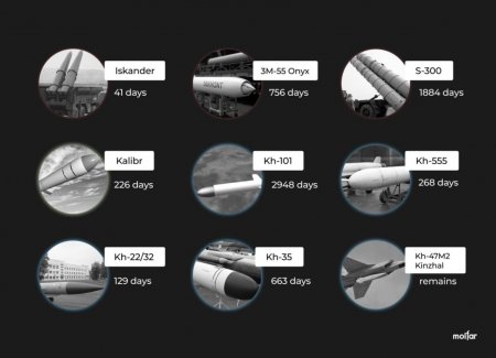 На основі даних про інтенсивність ракетних обстрілів території України аналітики підрахували, на скільки днів росії вистачить ракет цих типів, щоб продовжувати обстріли.