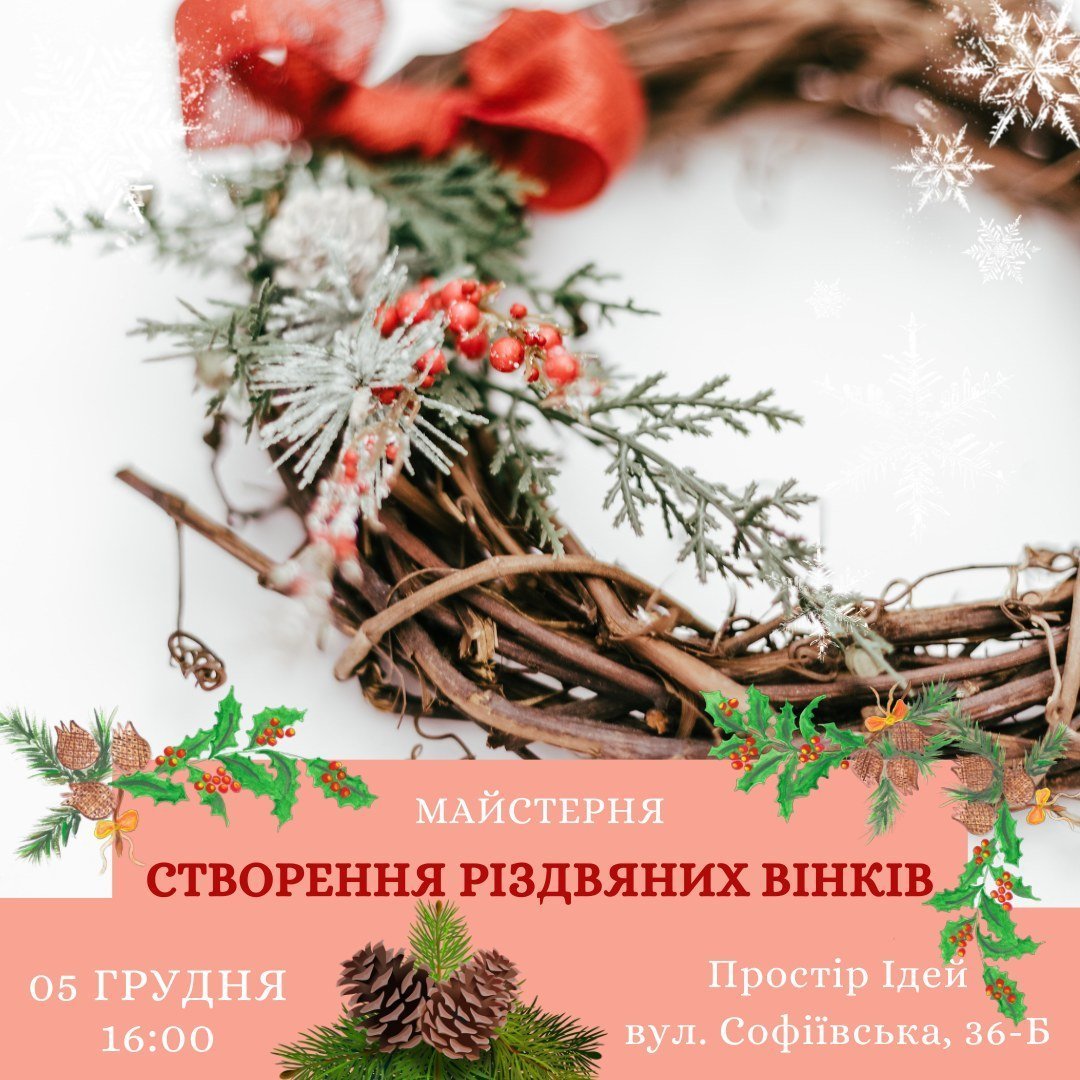 У нас є виноградна лоза, а ви приносьте декор. Ми разом зробимо віночки та прикрасимо їх. Що можна взяти для декору, крім декору? Можна – іграшки з кіндерів, стрічки, маленькі цукерки. А можна зробити ваш віночок суцільно з природніх матеріалів, тоді несіть шишки, жолуді, горішки, каштани, палички кориці, «зірочки» бадьяну, сухоцвіти, – йдеться в повідомленні громадської організації.