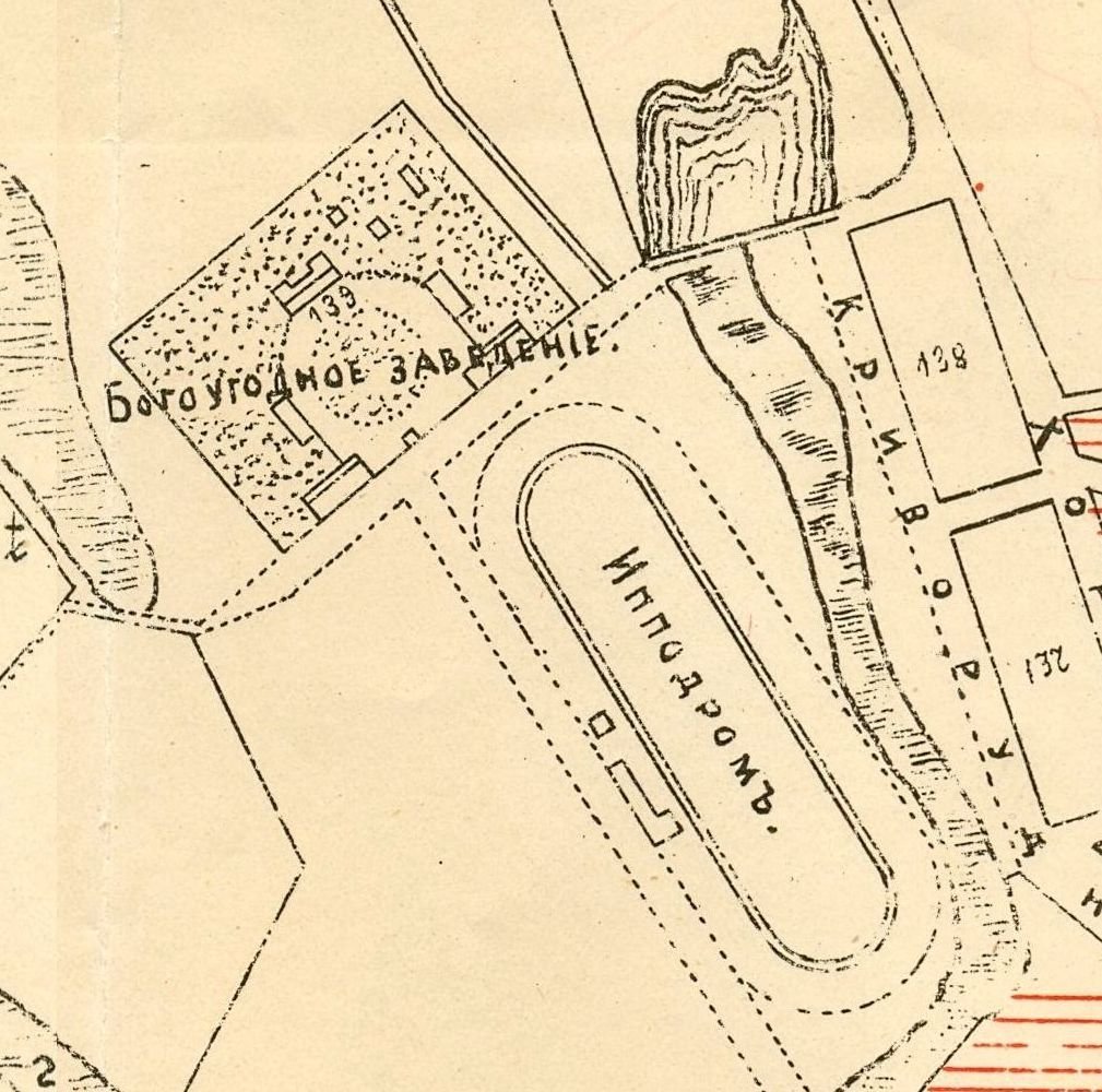 Територія Кременчуцького богоугодного закладу (сучасної лікарні №1) на плані міста 1908 року
