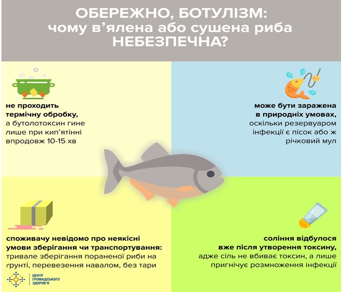 За 2022 рік (станом на 6 грудня) у Кременчуці зафіксували 3 випадки ботулізму. За інформацією завідувача Кременчуцького РВП ДУ «Полтавський ОЦКПХ МОЗ» Андрія Полякова, усі вони були обумовлені вживанням в’яленої риби.