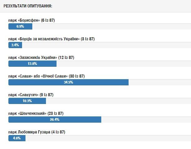 Триває голосування за перейменування парку «Ювілейний» на сайті мерії Кременчука. Серед 7 пропозицій найбільше набирають варіанти парк «Слави» та «Шевченковий».