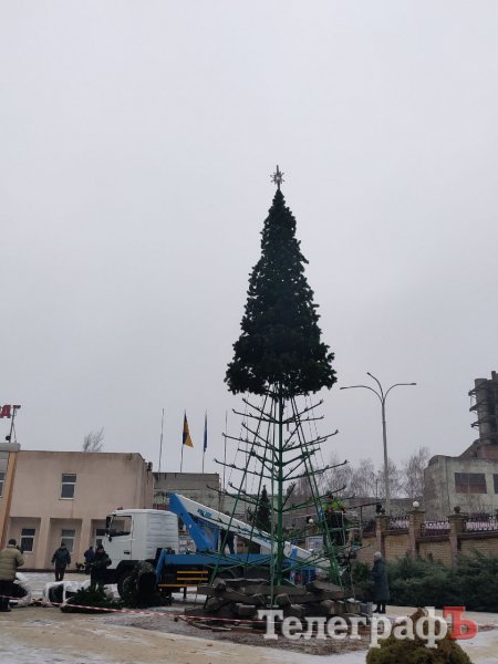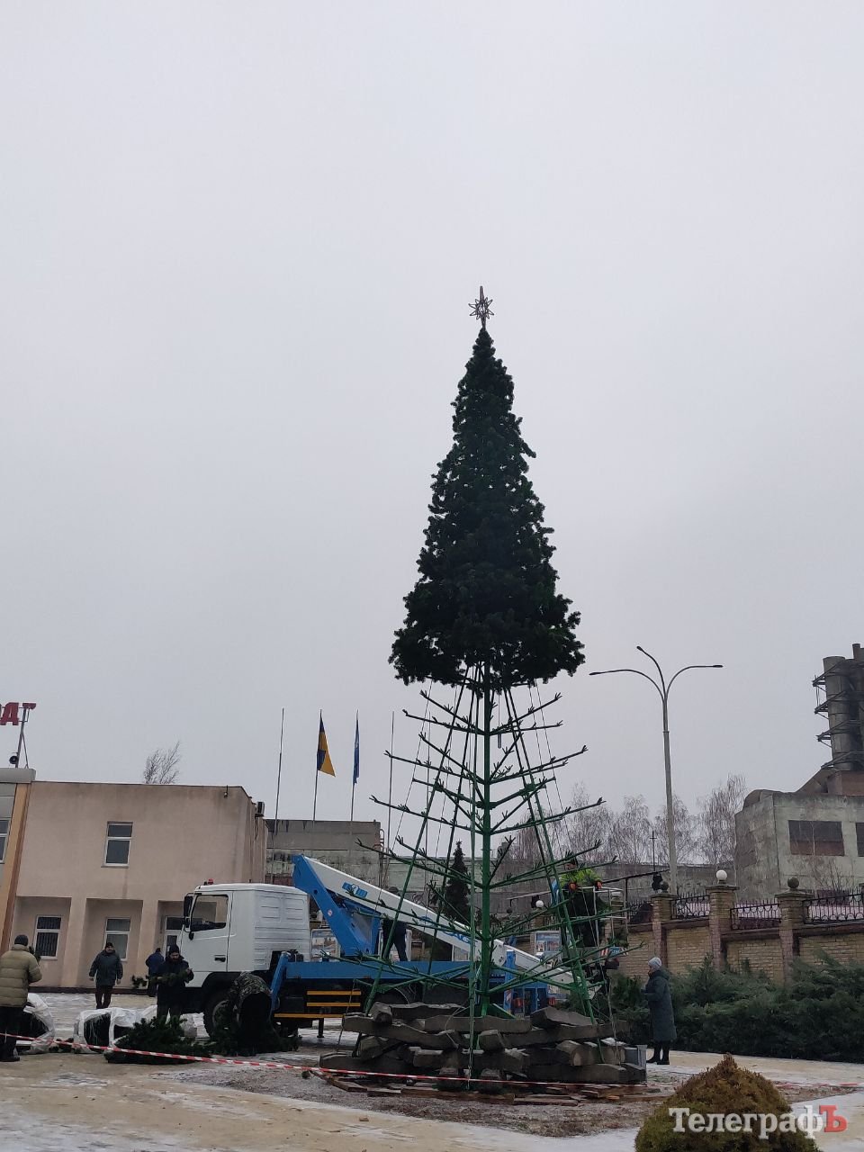 Біля прохідної Крюківського вагонобудівного заводу, що на Раківці, почали встановлювати новорічну красуню.