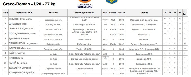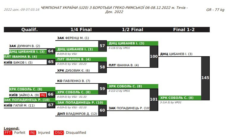 У підсумку наш спортсмен став бронзовим призером у ваговій категорії до 77 кг. Спортсмен виступав під керівництвом тренерів Сергія Бузька та Анатолія Коханевича.