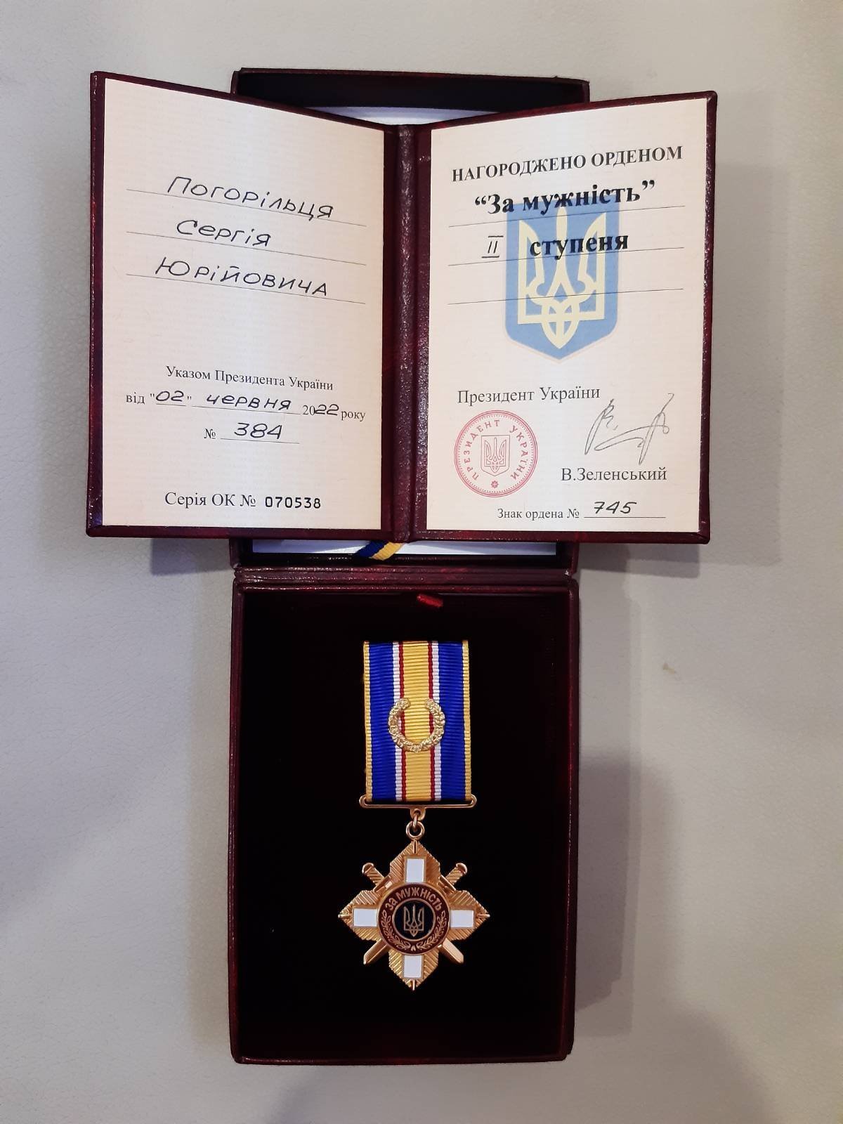 — Указом Президента України №384 від 02.06.2022 р. здобувача кафедри економіки КрНУ, студента магістратури за спеціальністю 051 – Економіка, Погорільця Сергія Юрійовича, який боронить Україну, нагороджено орденом «За мужність» ІІ ступеня, — йдеться у повідомленні Кафедри економіки КрНУ ім. М.Остроградського.
