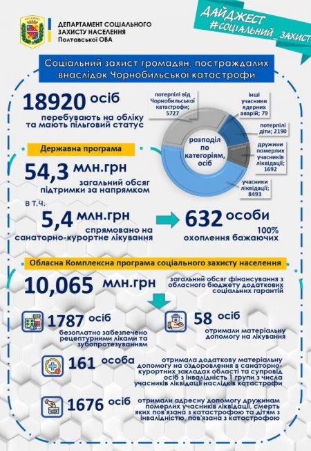 На Полтавщині підбили річні підсумки соціального захисту громадян, постраждалих внаслідок Чорнобильської катастрофи. Навіть випустили Дайджест з ключовими показниками.