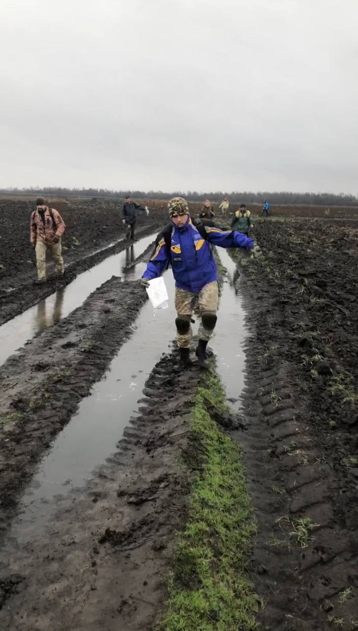 17 кілометрів звивистими шляхами, бездоріжжям, болотистою місцевістю, під дощем, загрузаючи в розмоклій землі по щиколотки