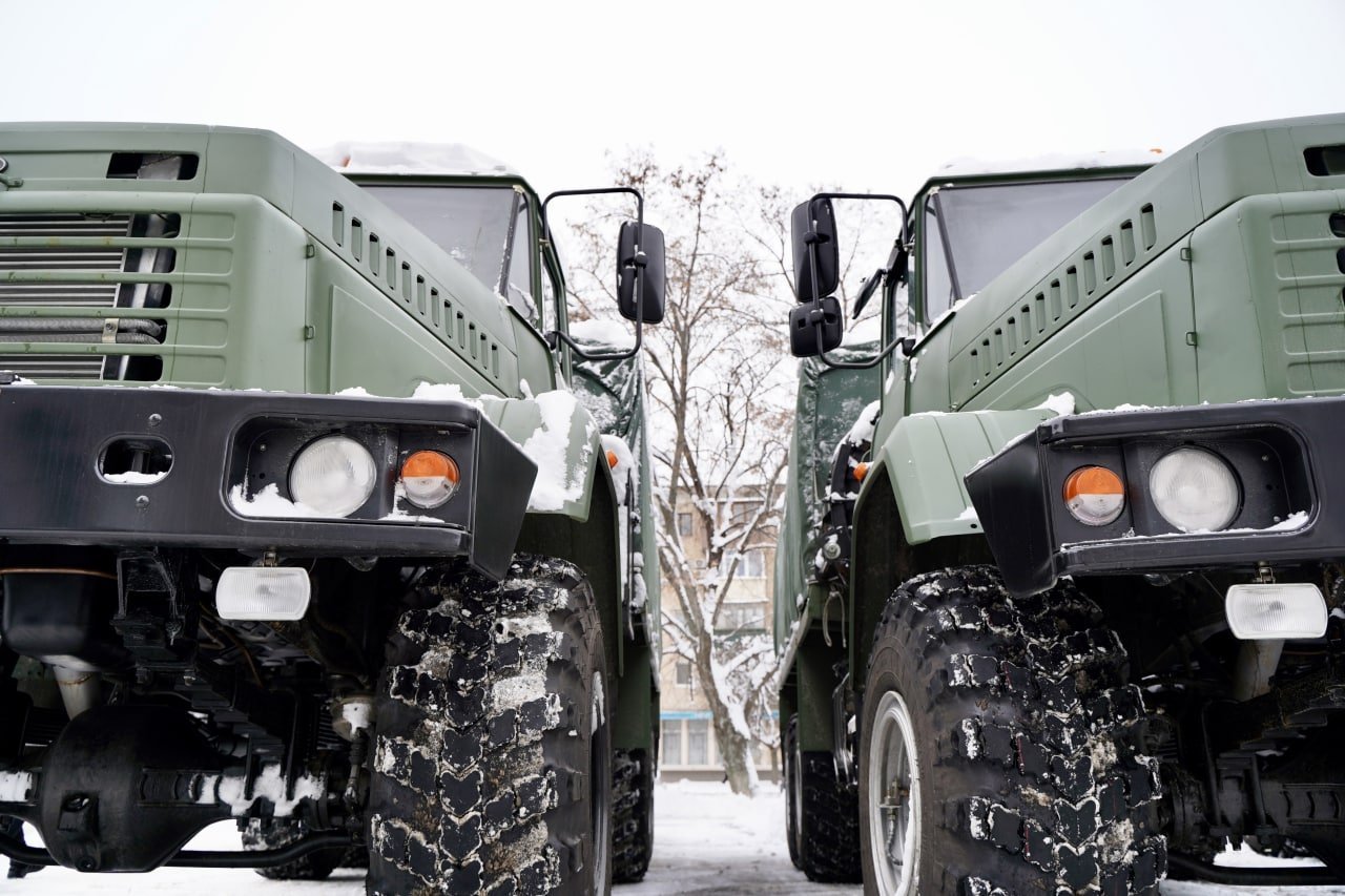 Зокрема, чотири вантажні, підйомність кожного – 12 тонн. Ще одне авто обладнане пересувною кухнею.