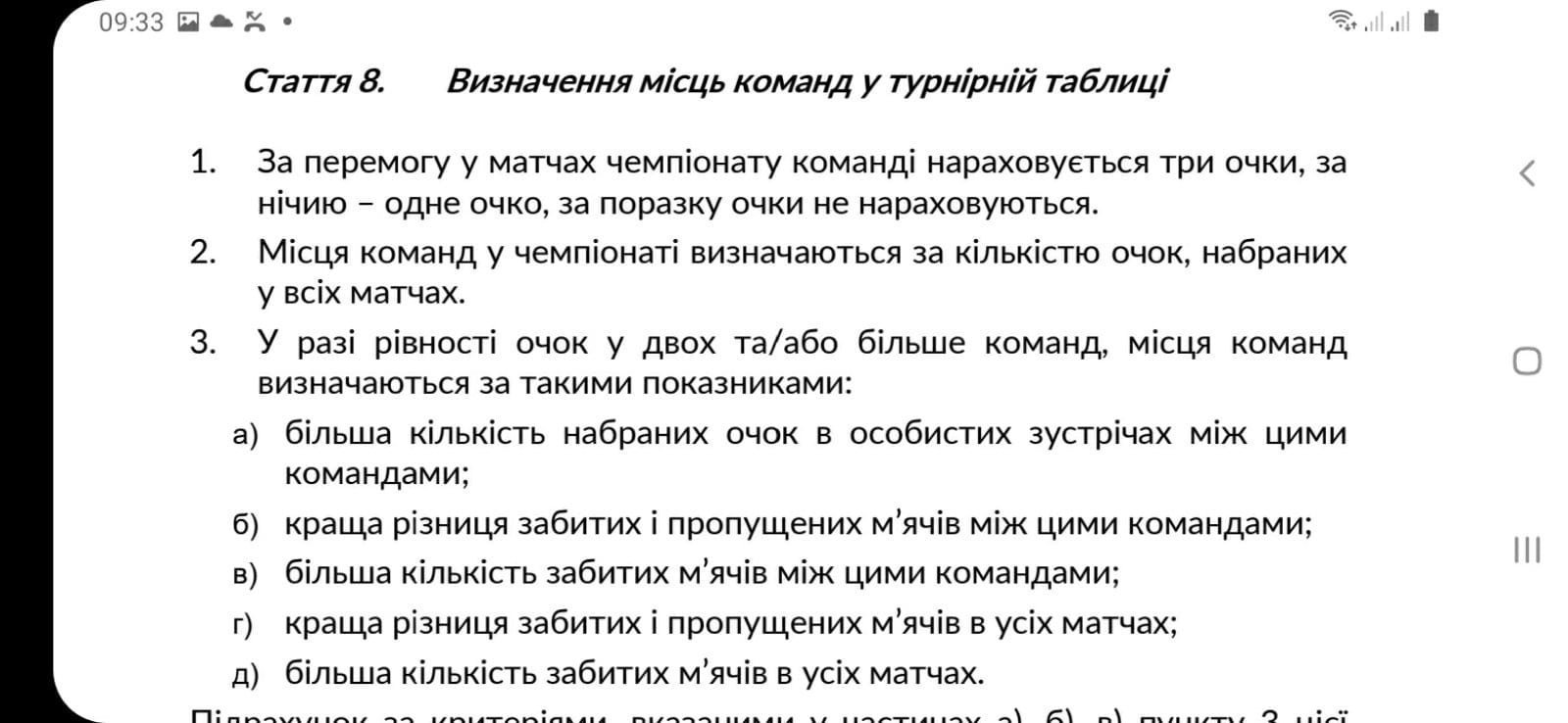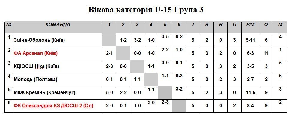 Ми з Олександрією набрали по 9 очок, але за нами перемога в особистій зустрічі й у нас краща різниця забитих та пропущених. Проте в регламенті Дитячо-юнацької ліги на першому місці, при однаковій кількості очок стоїть кількість перемог.