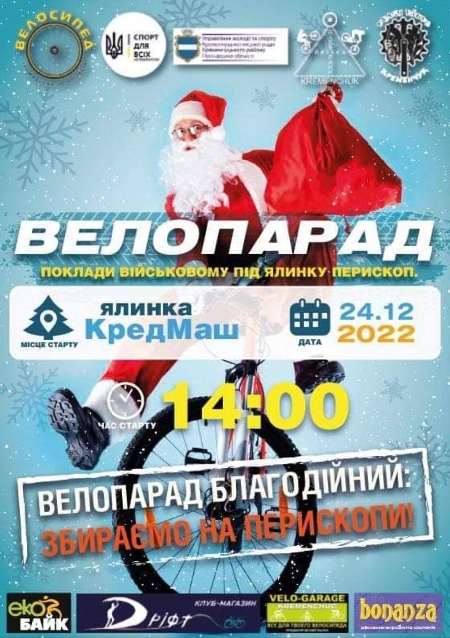 — Що таке Різдво 2022? Звісно, зазвичай це свято. Але в цьому році Різдво — це ще один привід зібрати кошти для наших героїв! Тож, шановна кременчуцька велогромадо, запрошуємо на Різдвяний благодійний велопарад, — повідомив на своїй сторінці у фейсбуці голова ГО «Велосипед» Олексій Корчак.