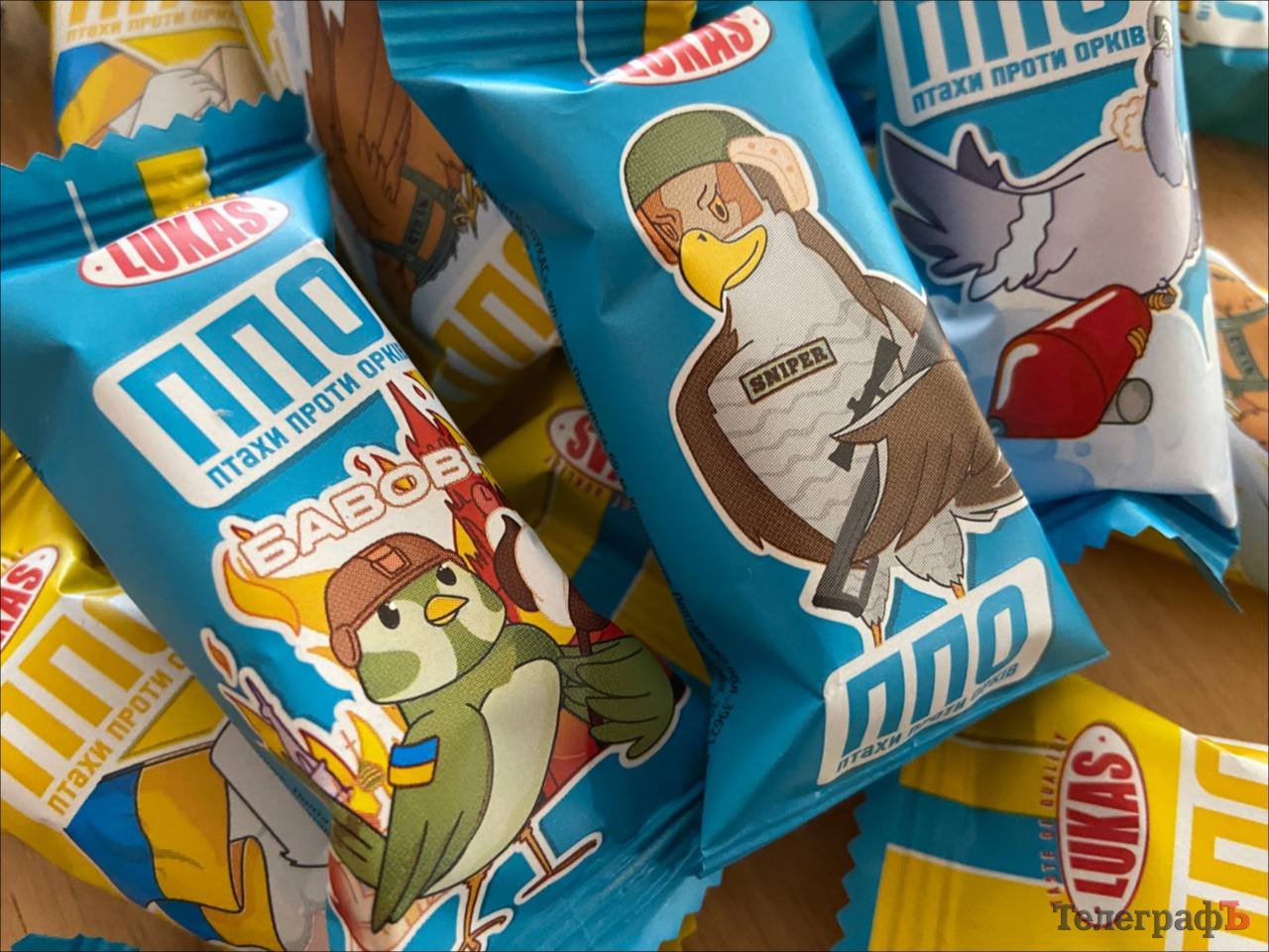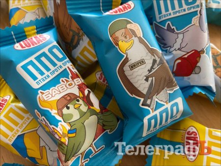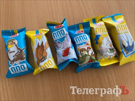 «ППО» (Птахи проти орків) не лише у бойовій обгортці, а й жовто-блакитні всередині. Такі цукерки створила кременчуцька компанія «Лукас».
