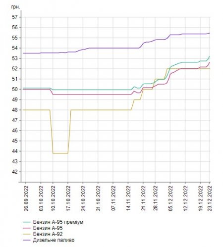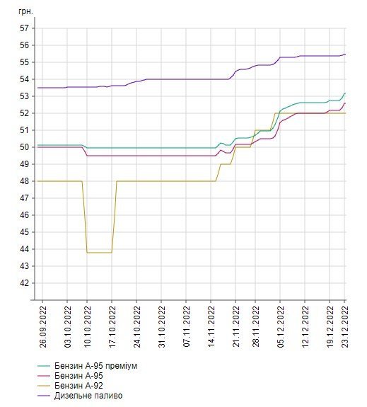 Графік зростання цін на бензини та дизель з 26 вересня до 23 грудня