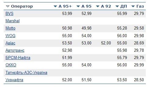 - Дизельне паливо – 55,44 (+0.06 грн/+0.113%)