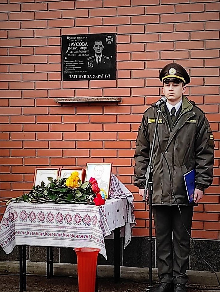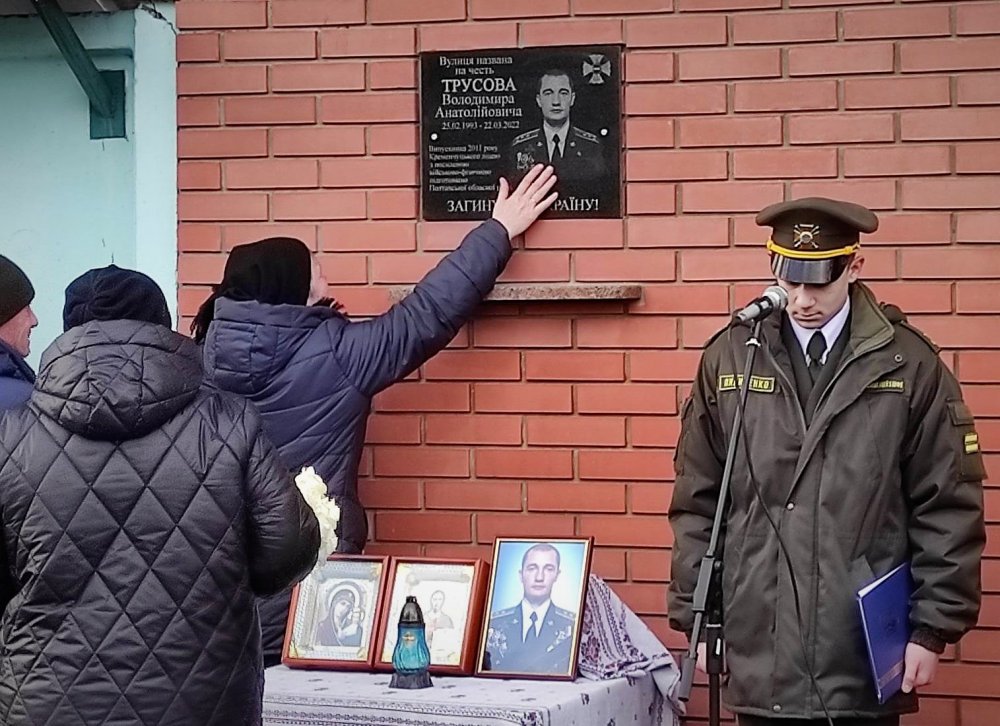 28 грудня у Кременчуцькому ліцеї з посиленою військово-фізичною підготовкою відкрили меморіальну дошку на честь випускника навчального закладу капітана Володимира Трусова.