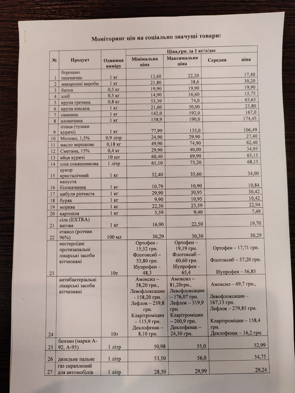 Необґрунтованого завищення цін на соціально значущі товари за минулий тиждень не виявили. Моніторинг показав, що ціни на соціально значущі товари у Кременчуцькому районі відповідають середньообласним.