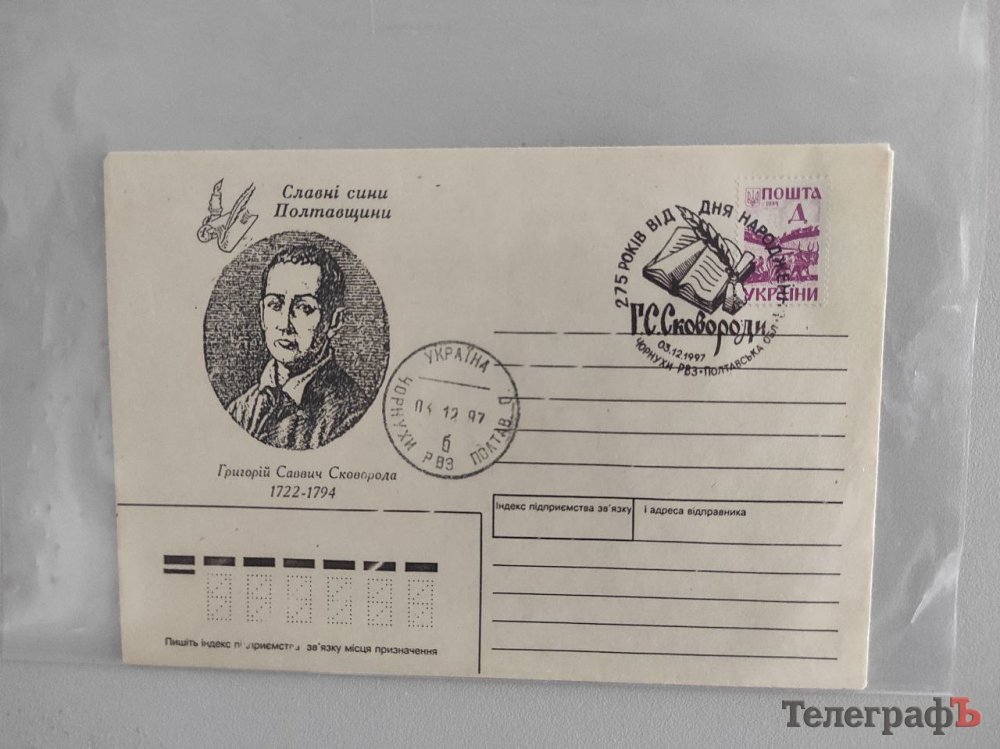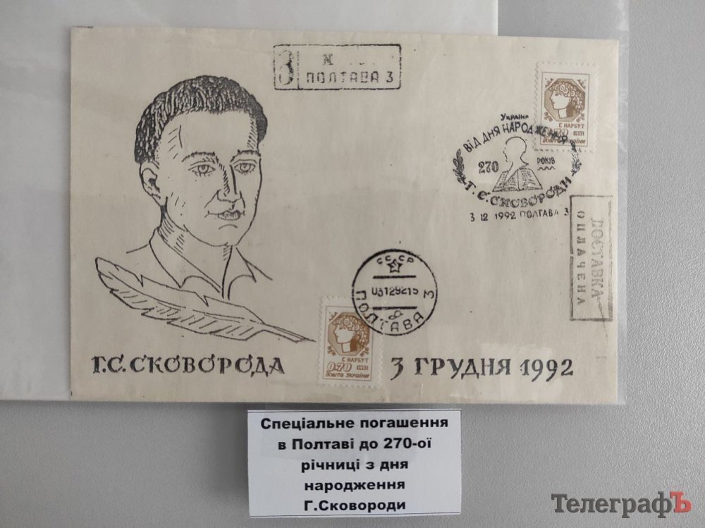 У художній галереї на Коцюбинського, 4 триває філателістична виставка з колекції Сергія Кононенка, присвячена 300-річчю з дня народження Григорія Сковороди – видатного українського філософа, богослова, поета, педагога, композитора, який мав значний вплив на сучасників і подальші покоління своїми байками, піснями, філософськими творами, а також способом життя, через що його називали «Сократом».