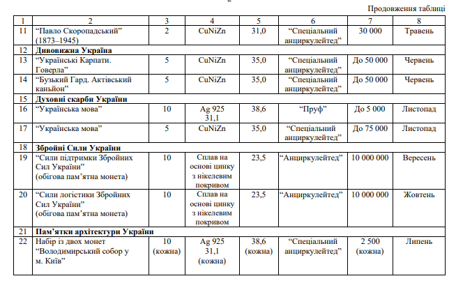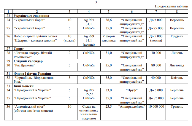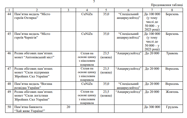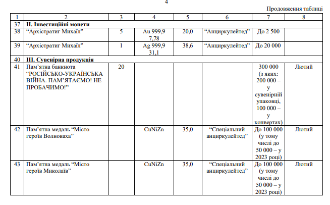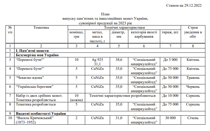 План випуску пам’ятних та інвестиційних монет України, сувенірної продукції на 2023 рік