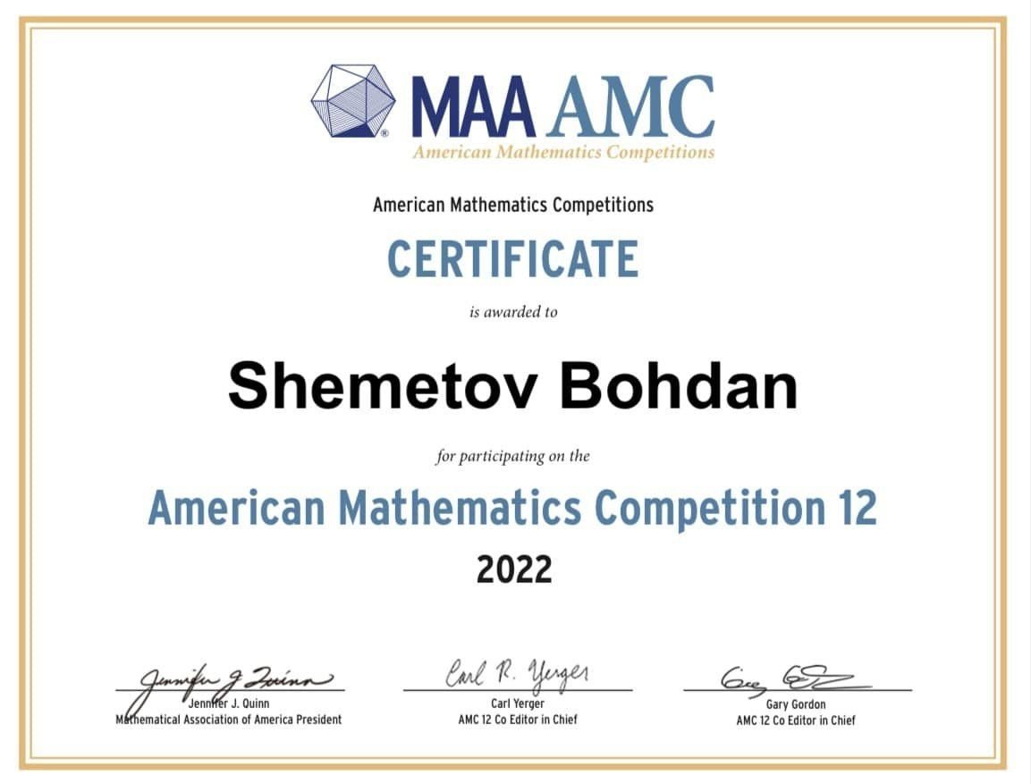 Ліцеїст з Кременчука Богдан Шеметов виборов перемогу в Американському математичному конкурсі «МАА АМС». Про це повідомили у пресслужбі Кременчуцької міської ради.
