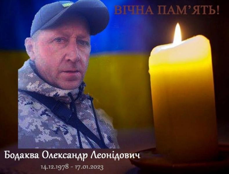 17 січня під час виконання службового обов’язку в районі населеного пункту Моначинівка Куп’янського району Харківської області загинув лейтенант Олександр Леонідович Бодаква. Про це повідомляє пресслужба Другого відділу Кременчуцького РТЦК та СП.