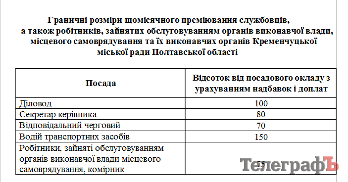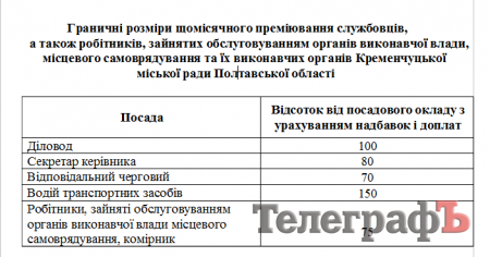 Так, 20 січня 2023 року Кременчуцька міська рада ухвалила рішення про втрату чинності попередніх рішень Кременчуцької міськради від 2017 та 2019 року щодо преміювання працівників місцевого самоврядування, яким встановлювали рівень граничних розмірів премій для службовців та робітників, зайнятих обслуговуванням органів виконавчої влади, місцевого самоврядування та їх виконавчих органів Кременчуцької міськради.