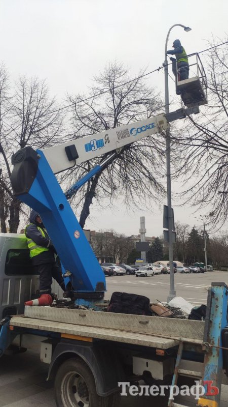 Сьогодні, 24 січня, працівники комунального підприємства «Міськсвітло» знімають новорічну ілюмінацію. Роботи по вулиці Соборній тривали з самого ранку.