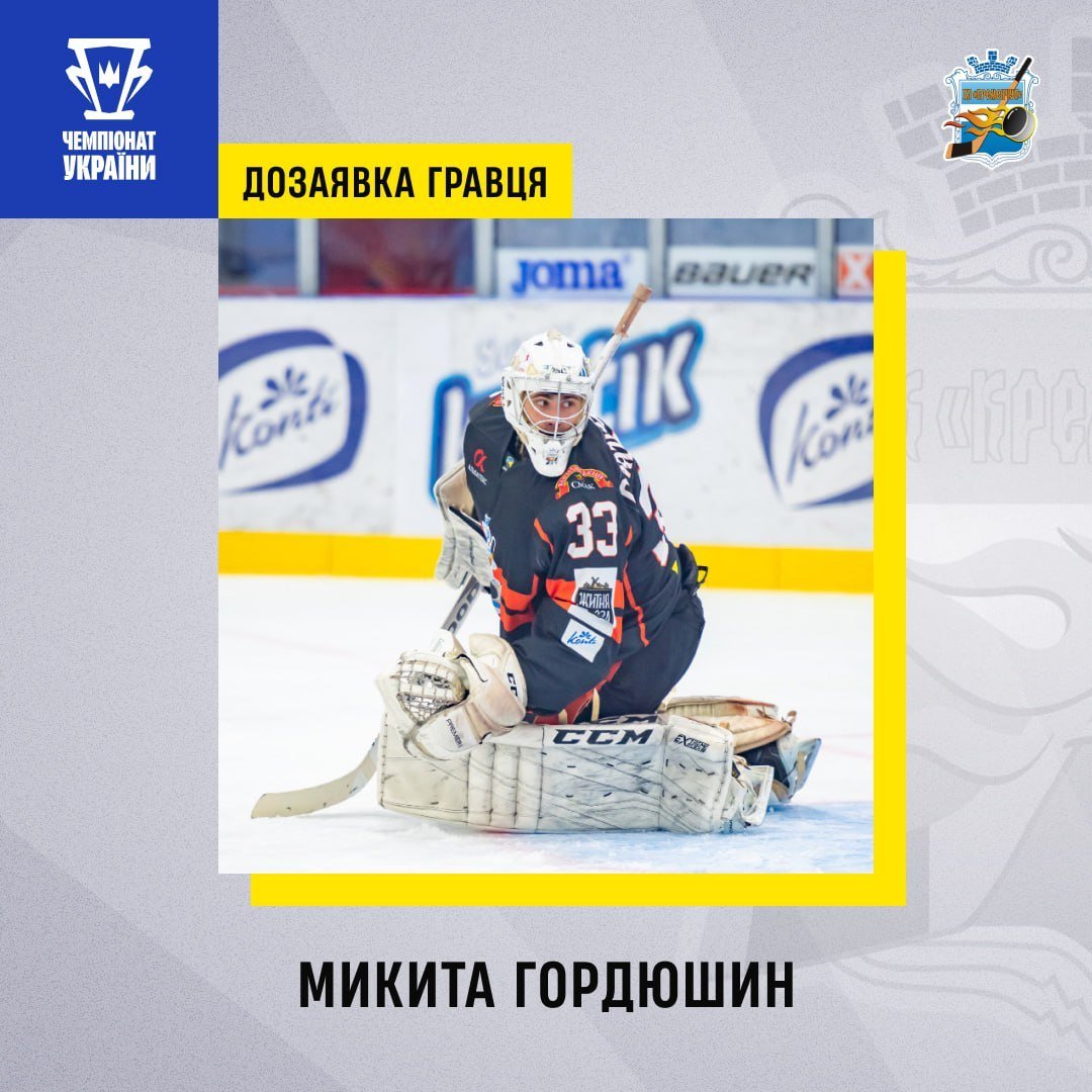 Зокрема після майже річної паузи у виступах повертається в кременчуцьку команду 24-річний голкіпер Микита Гордюшин. Микита – вихованець донецького хокею. В провідному дивізіоні чемпіонату України він почав виступати з сезону-2017/2018, коли грав за броварських «Вовків». З осені 2018-го і до 24 лютого 2022-го Гордюшин представляв «Кременчук», став з клубом чемпіоном України-2020, двічі вигравав бронзові й одного разу срібні нагороди. Загалом у національних першостях Микита відіграв 94 матчі. У 2019-му Гордюшин отримував виклики з лав національної збірної України та навіть провів два матчі в олімпійській кваліфікації до Пекіна-2022.
