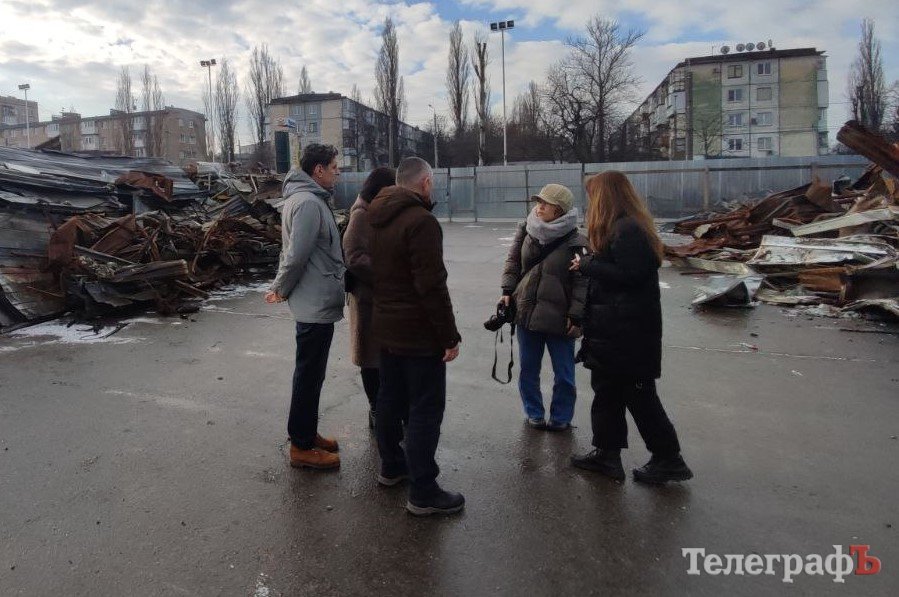 На місці цієї трагедії — території колишнього ТЦ «Амстор» — Reiko Buma зустрілася з начальником Кременчуцької районної військової адміністрації Олегом Лєдніком та журналістами міста.