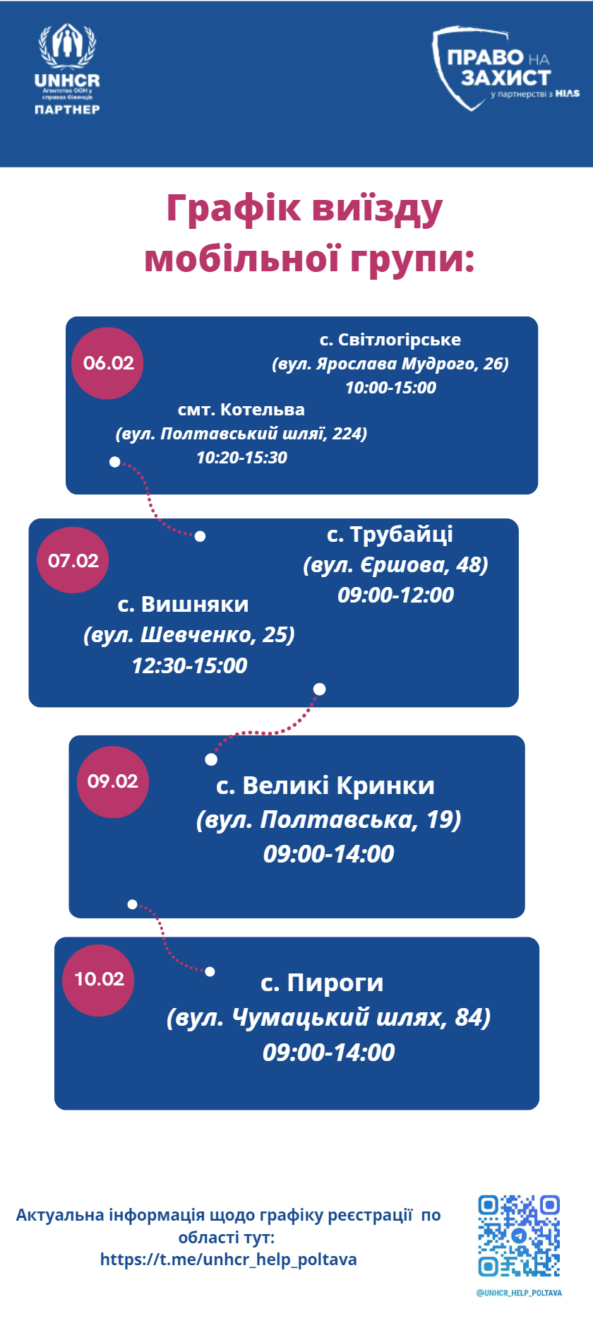 Виїзд мобільної групи: у Кременчуці – вул. Ватутіна, 7, у Полтаві – Павленківська, 3б.