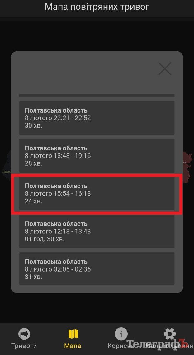 Фото зроблені 8 лютого 2023 року о 15.56, а повітряна тривога тривала з 15.54 до 16.18.