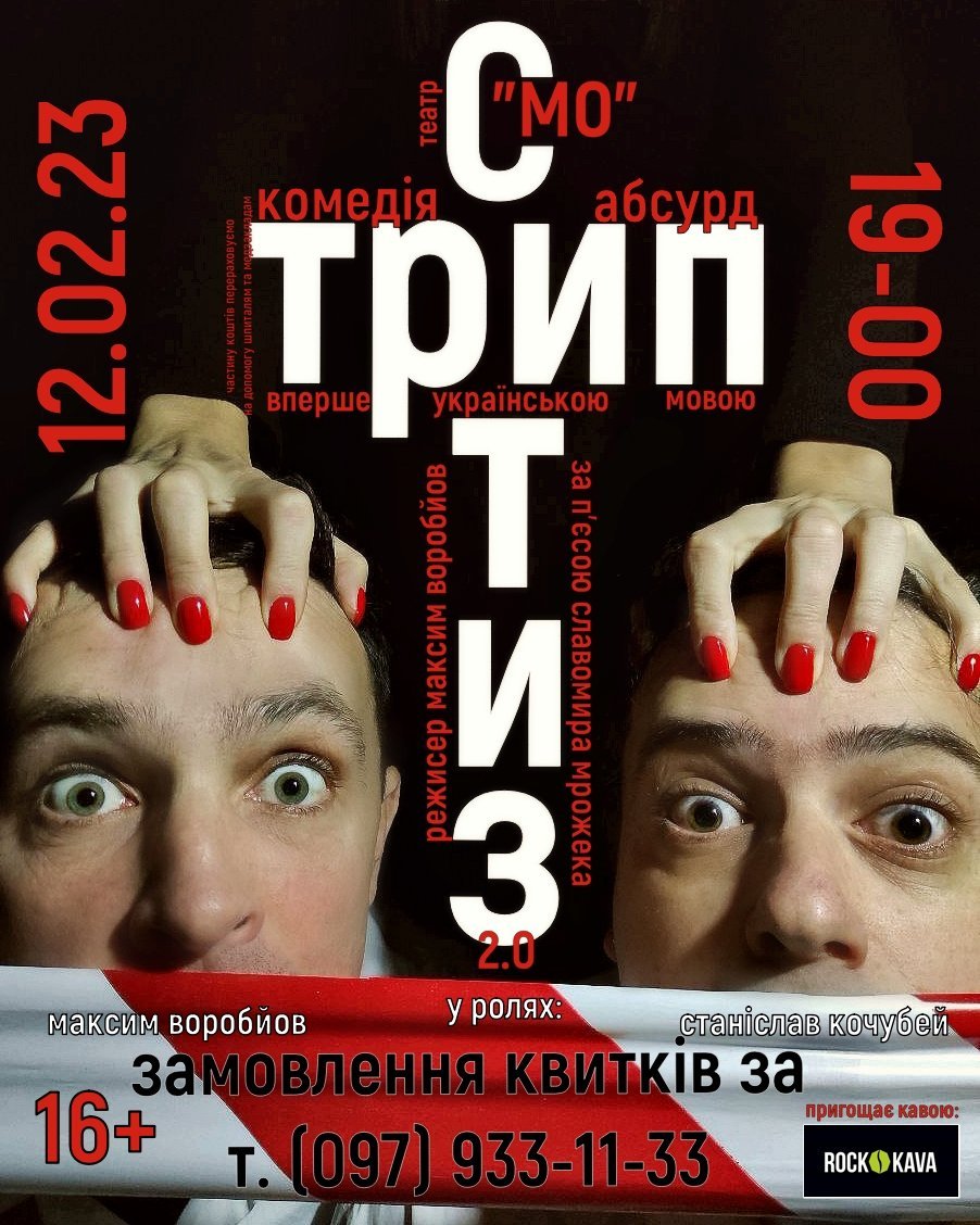 12 лютого о 19.00 кременчужани та гості міста можуть отримати театротерапію – театр «МО» покаже комедію-абсурд «Стриптиз».